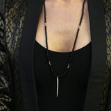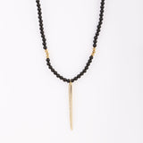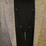 Arrow unisex 4mm beaded necklace with Black Agate stone & CZ Diamonds