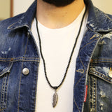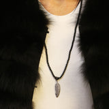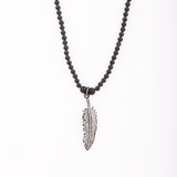 Feather unisex 4mm beaded necklace with natural Matte Onyx stone & CZ Diamonds