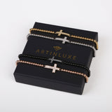 The Cross bracelet is available in plating: gold, rose gold, silver, rhodium