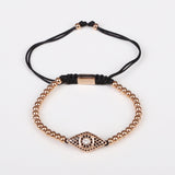 The Evil Eye bracelet is available in plating: gold, rose gold, silver, rhodium