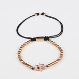 The Hamsa Hand bracelet is available in plating: gold, rose gold, silver, rhodium