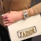The Luxe bracelet is available in plating: gold, rose gold, silver, rhodium